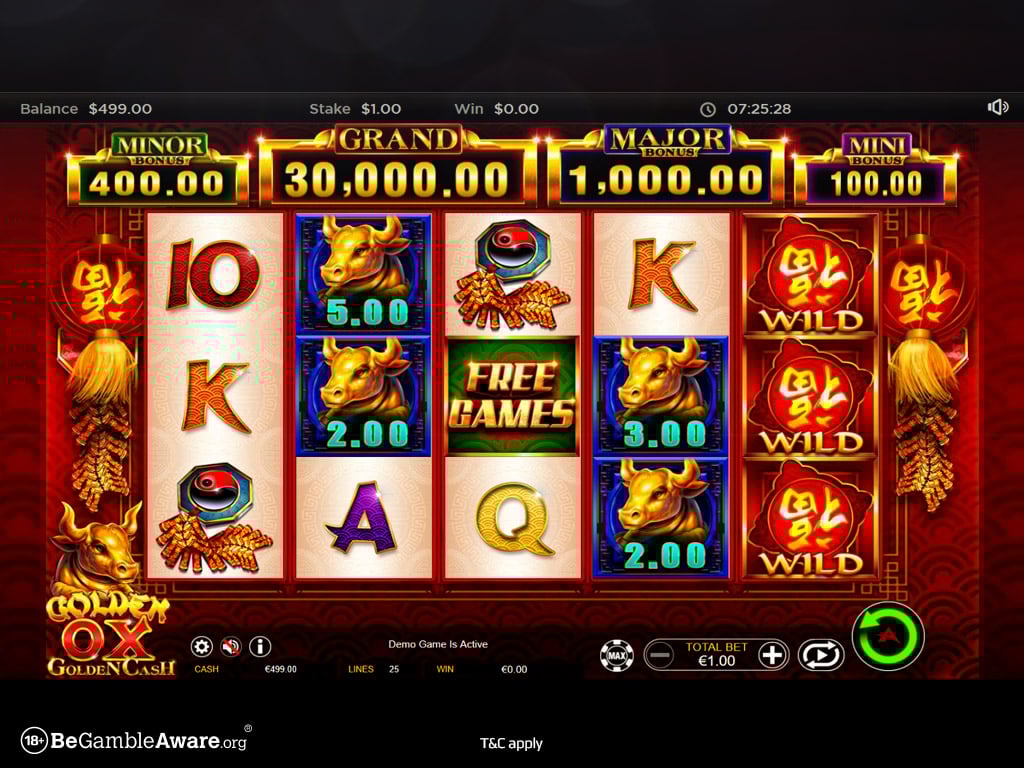 Με θέμα την Ασία, ο κουλοχέρης Golden Ox είναι ικανός να σου προσφέρει μεγάλα ποσά και μια ευχάριστη εμπειρία παιχνιδιού. Σε ό,τι έχει να κάνει με την εμφάνιση, το φρουτάκι είναι πολύ απλό, αλλά όμορφα στημένο. Ενώ περιστρέφονται οι τροχοί, να έχεις τα μάτια σου ανοιχτά για τις λειτουργίες μπόνους που μπορούν να οδηγήσουν σε μεγάλα jackpot. Τα σύμβολα είναι εμπνευσμένα από την Ασία και το παιχνίδι μπορεί να κρατήσει ζωντανό το ενδιαφέρον με το μπόνους παιχνίδι δωρεάν περιστροφών. Στο συγκεκριμένο φρουτάκι, το σύμβολο wild είναι αυτό με το κόκκινο φυλαχτό. Αν θέλεις να ενεργοποιήσεις τον γύρο δωρεάν περιστροφών, θα πρέπει να εμφανίσεις 3 ή περισσότερα scatters στους τροχούς.