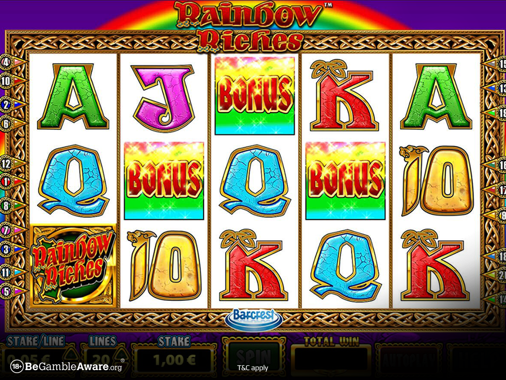 Το Rainbow Riches είναι μια υπέροχη επιλογή για τους λάτρεις του θέματος της Ιρλανδικής τύχης. Το πλέγμα αποτελείται από πέντε τροχούς και 20 γραμμές πληρωμής. Λόγω του θέματος, θα πρέπει να περιμένεις να δεις κιούπια με χρυσό, ουράνια τόξα, και τετράφυλλα τριφύλλια. Αν βρεις 3 ξωτικά, θα ενεργοποιήσεις τη λειτουργία Road to Riches, όπου ένας τυχερός τροχός θα σου υποδείξει πόσα βήματα θα κάνεις στο μονοπάτι των επάθλων. Για να δώσεις ώθηση στα κέρδη σου, βρες τρία σύμβολα Wishing Well για να ενεργοποιήσεις την αντίστοιχη λειτουργία, και να κερδίσεις ένα πολλαπλασιαστή. Στο φρουτάκι, υπάρχει επίσης και η λειτουργία μπόνους Pots of Gold. Βρες 3 δοχεία με χρυσό που το κάθε ένα διαθέτει ενσωματωμένο πολλαπλασιαστή, και απόλαυσε το άθροισμα τους!