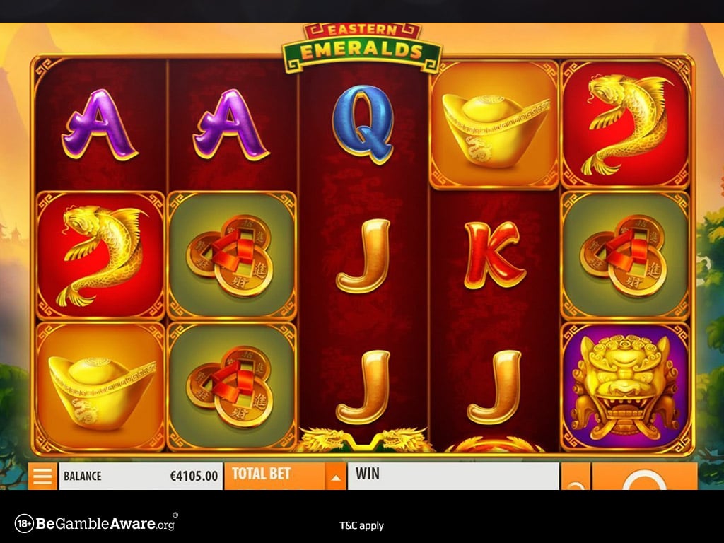 Κάνε ένα ταξίδι στην άγρια Ασία, με το παιχνίδι Eastern Emeralds, και απόλαυσε τη γαλήνη ενός όμορφου βουνού που θα δεις στο φόντο. Ο συγκεκριμένος τίτλος, προσφέρει μια όμορφη εμπειρία και υπόσχεται μεγάλα κέρδη. Στο πλέγμα θα δεις τα σύμβολα από 10 μέχρι Α, δράκους, χελώνες, νομίσματα, και πολλά άλλα. Ο δράκος, βέβαια, είναι το πιο επικερδές σύμβολο. Για να αυξήσεις τα κέρδη σου μπορείς να εκμεταλλευτείς το σύμβολο wild, το οποίο μπορεί να εμφανιστεί και με ενσωματωμένο πολλαπλασιαστή, μέχρι και 5x. Το μπόνους παιχνίδι μπορεί να ενεργοποιηθεί αν βρεις στο πλέγμα 3 σύμβολα scatter. Ακολούθως, θα πρέπει να επιλέξεις ανάμεσα σε 4 διαφορετικούς συνδυασμούς δωρεάν περιστροφών και πολλαπλασιαστών.