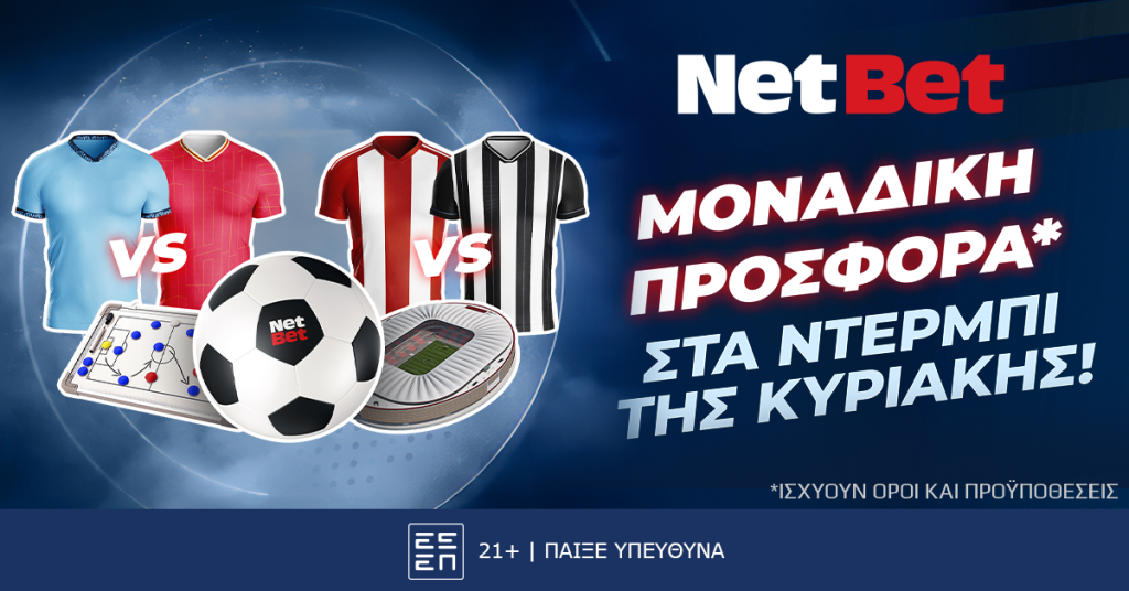Μοναδική προσφορά* για τα ντέρμπι της Κυριακής από τη NetBet!