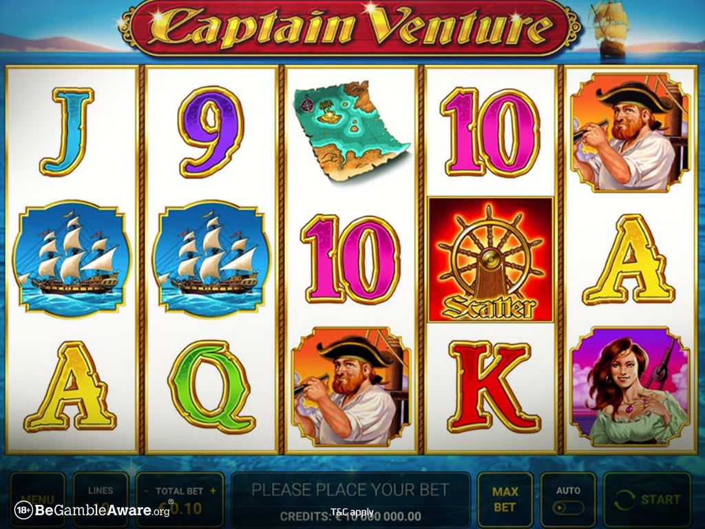 Το Captain Venture αποτελεί ένα από τα πιο συναρπαστικά παιχνίδια της Novomatic, που σίγουρα αξίζει να δοκιμάσεις. Με 5 τροχούς και 10 γραμμές πληρωμής, το παιχνίδι που έχει ως θέμα του τις θάλασσες και τις περιπέτειες ενός καπετάνιου, σε προσκαλεί σε μια διασκεδαστική εμπειρία. Στο πλέγμα θα δεις σύμβολα όπως πειρατικά καράβια, άγκυρες, χάρτες, αλλά και τον ίδιο τον καπετάνιο, ο οποίος είναι το σύμβολο wild. Για να ενεργοποιήσεις τη λειτουργία δωρεάν περιστροφών, το μόνο που έχεις να κάνεις είναι να βρεις 3 ή περισσότερα σύμβολα scatter. Αν η τύχη είναι με το μέρος σου, μπορεί να κερδίσεις μέχρι και 20 δωρεάν προσπάθειες. Θέλεις περισσότερα; Οι νίκες στο μπόνους παιχνίδι έχουν πολλαπλασιαστή 4x!