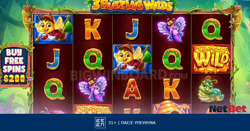 Συχνά οι δημιουργοί παιχνιδιών καζίνο προσπαθούν να εντυπωσιάσουν, σχεδιάζοντας πλέγματα σε σχήμα κυψέλης ή παρόμοιες πρωτότυπες ιδέες για φρουτάκια με θέμα τις μέλισσες. Η Pragmatic Play όμως επέλεξε μια πιο, ας πούμε, “πρακτική” προσέγγιση αυτή τη φορά, και το αποτέλεσμα είναι ένα παιχνίδι εξαιρετικά ευχάριστο και εύκολο στο παιχνίδι. Το 3 Buzzing Wilds μας μεταφέρει σε ένα άνοιγμα δάσους, όπου τα λουλούδια λικνίζονται απαλά στον άνεμο, ενώ οι μέλισσες και οι πεταλούδες είναι απασχολημένες με τις καθημερινές τους ασχολίες. Το σκηνικό είναι ειδυλλιακό και τα σύμβολα είναι όμορφα σχεδιασμένα.