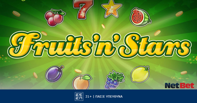 Το Fruits & Stars συνδυάζει κλασικά φρούτα όπως κεράσια, λεμόνια, πορτοκάλια, δαμάσκηνα και καρπούζια με πιο «κομψά» σύμβολα και φόντο. Οι ήχοι θυμίζουν παραδοσιακούς κουλοχέρηδες με κλικ και δονήσεις.